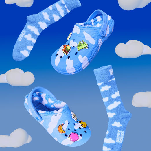A vibrant collaboration with Crocs — two colorful sets of clogs and matching socks. Designed for comfort, fun, and everyday expression. Playful prints meet Crocs' iconic shape. Made to stand out, wherever you go. See the full collab below.